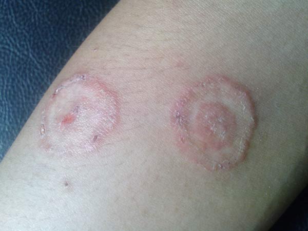 1、体癣如果没有得到及时有效的治疗,日久皮肤上有脱屑和色素沉着,皮损周边部位炎症明显,常有活动性红斑、丘疹及水疱。消灭传染因素因体癣大都由自身其他癣病而引起,故治疗体癣的同时要治疗其他部位的癣病,如头癣、手癣、足癣等。单一治疗不能真正的达到理想效果。